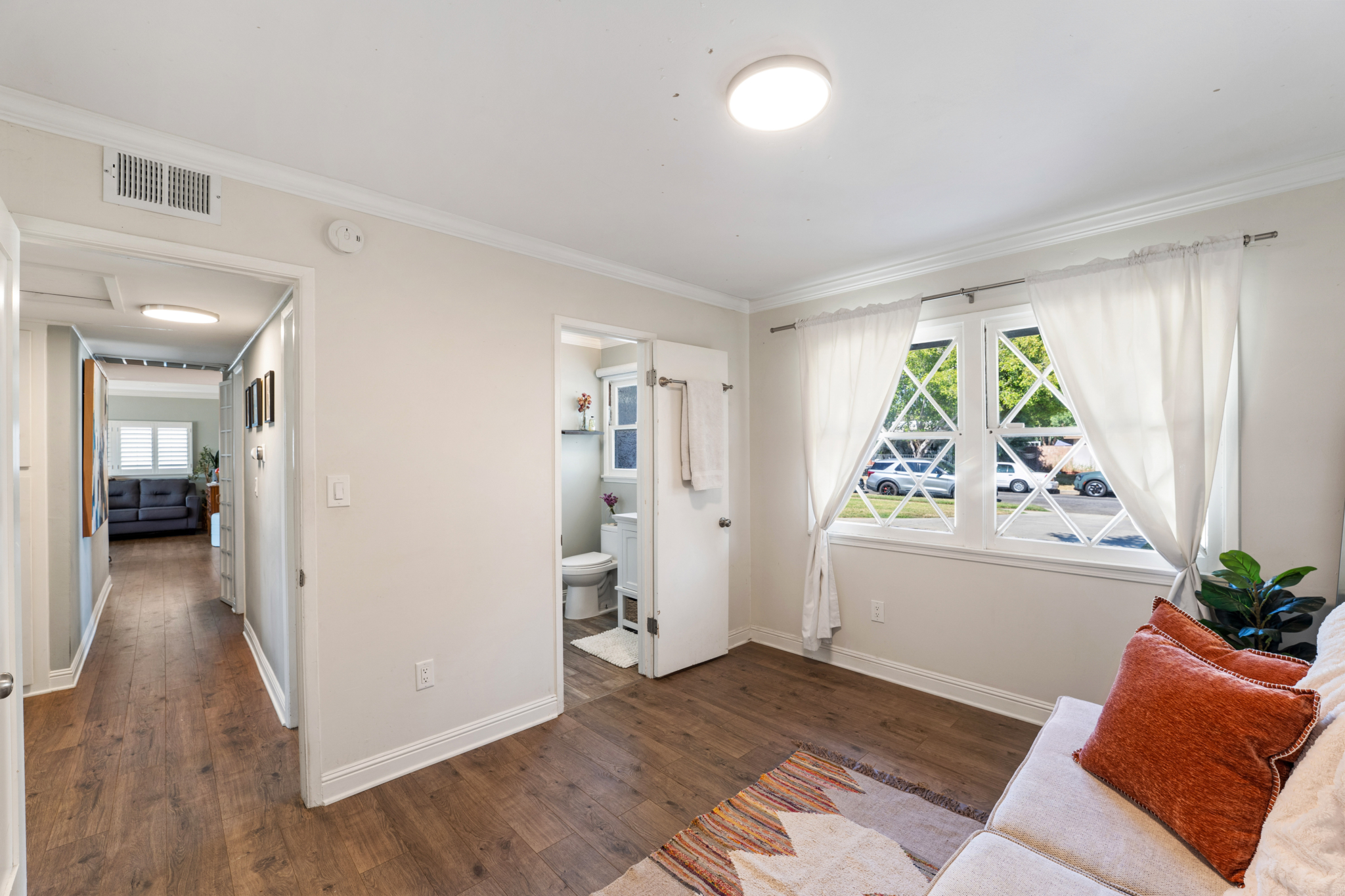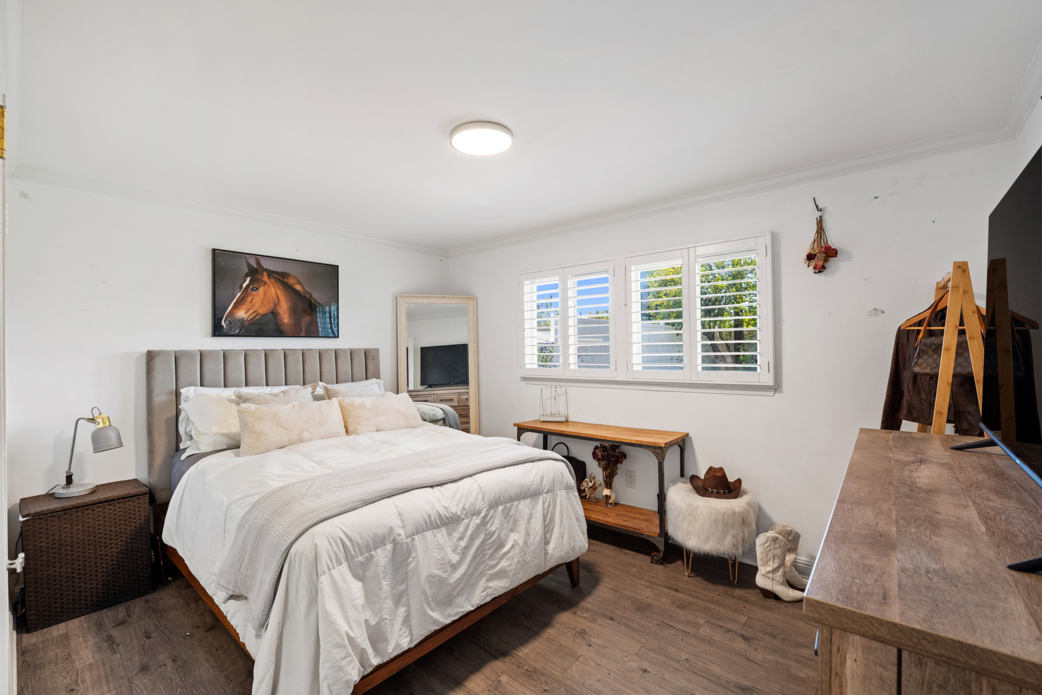 This updated 3 bedroom, 2 bathroom single-story home in one of Granada Hills’ most desirable neighborhoods is move-in ready and full of warmth and functionality. With stylish upgrades, a smart layout, and a spacious lot, it’s perfect just the way it is. It also offers exciting possibilities for the future. Whether you’re dreaming of a garage-to-ADU conversion or expanding into the backyard or side yard, this home gives you options without needing a thing today. Inside, you’ll find a seamless blend of tile and luxury plank flooring throughout, creating an easy flow and low-maintenance appeal. The kitchen is upgraded with granite countertops, stainless steel appliances, and modern cabinetry, offering both beauty and practicality. Both bathrooms feature granite vanities and contemporary finishes. The single-story layout is ideal for comfortable everyday living, with well-proportioned rooms and functional spaces designed to make the most of every square foot. Energy-saving plantation shutters and two mature backyard shade trees help keep the home cool and peaceful. Out front, a fruit-bearing orange tree adds charm and curb appeal. Located in an established neighborhood just moments from top-rated schools, parks, shopping, and dining, this home delivers convenience and community in equal measure. Whether you’re looking for your forever home or a flexible space with room to grow, this Granada Hills gem is ready to welcome you home.