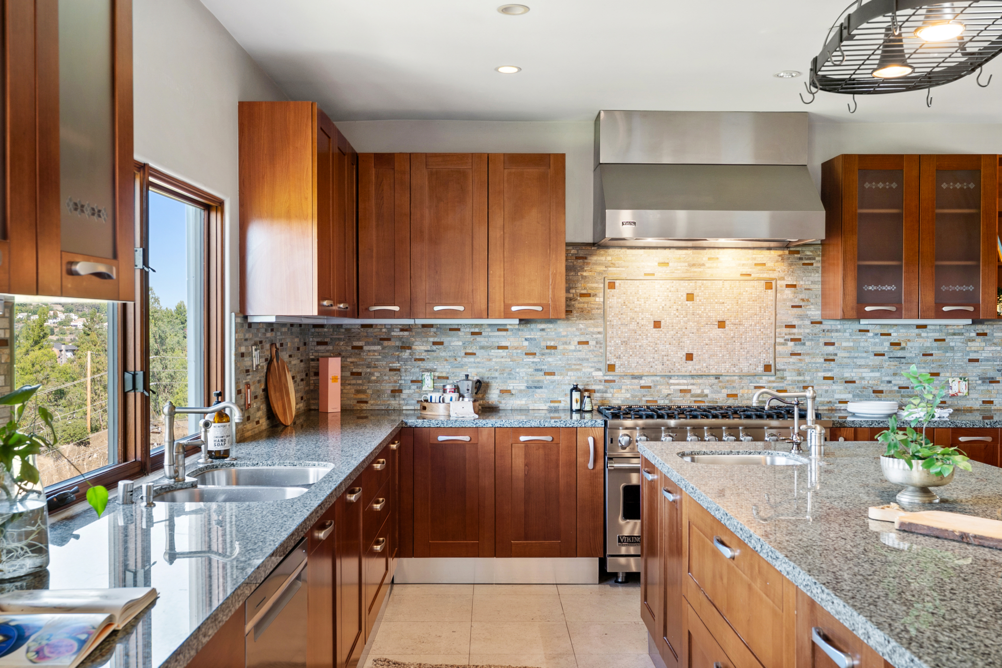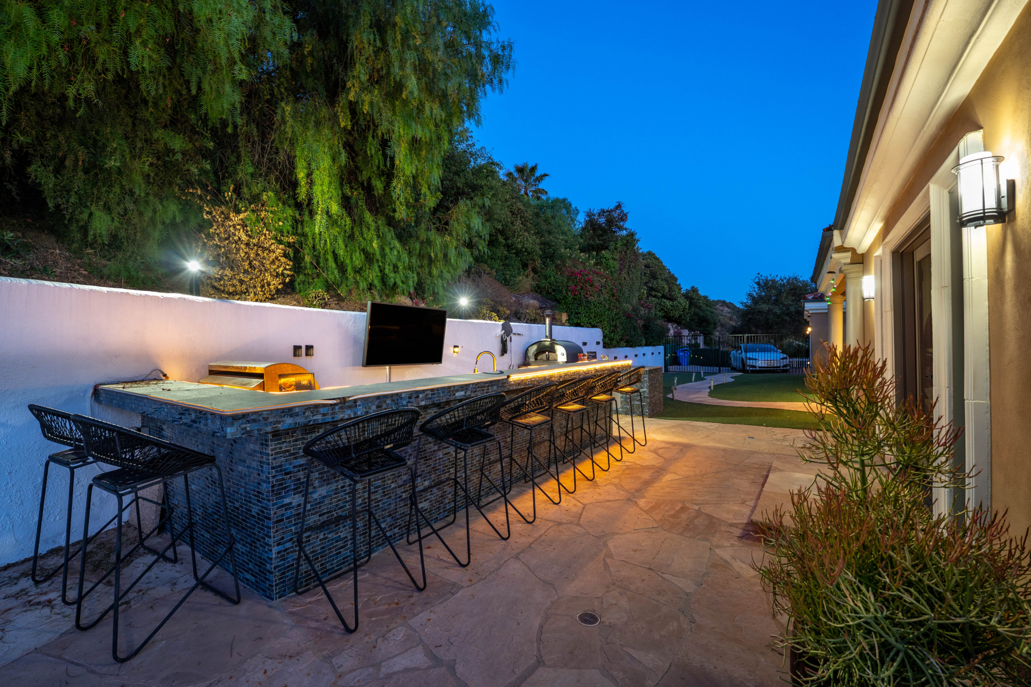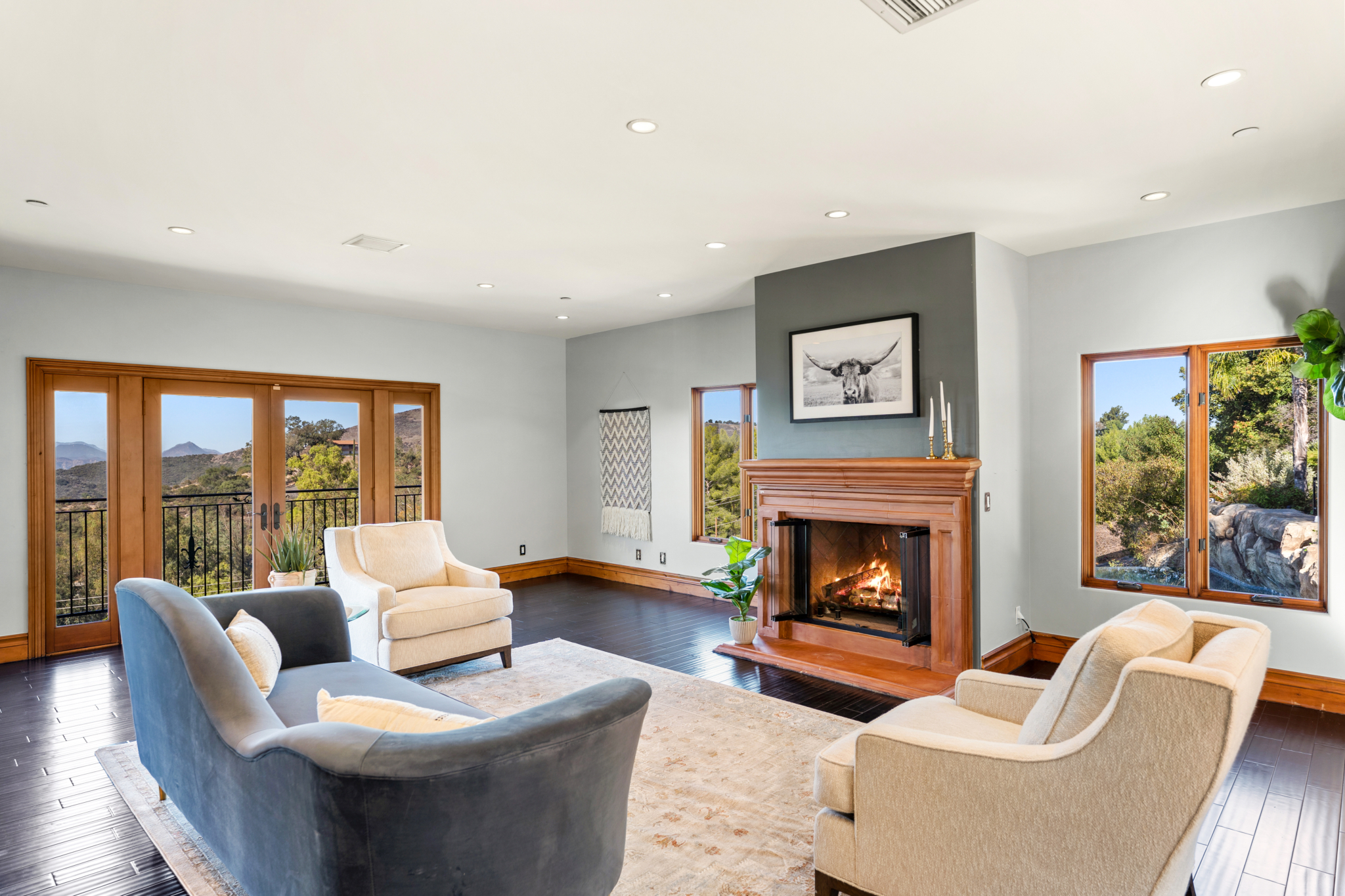 Tucked into the tranquil beauty of the Santa Monica Mountains, this estate is a rare find — blending architectural elegance with nature’s finest views. Perched just off the iconic Mulholland Highway and resting on nearly an acre of fully landscaped land, this 4,579 sq. ft. residence offers an unmatched lifestyle. Enjoy some of the most breathtaking views in the entire Santa Monica Mountain range, with sunsets off the patio that will truly take your breath away. Originally built in 2008, the home features a brand new negative-edge pool and spa oasis, complete with cascading waterfalls for a true resort-style experience. The outdoor space is an entertainer’s dream, boasting a fully equipped kitchen with a built-in pizza oven, high-end grill, and prep area — all set against a stunning mountain backdrop. Inside, the chef’s kitchen is outfitted with a Viking 8-burner stainless steel range and an oversized center island, perfect for hosting and everyday living. Throughout the home, you’ll find beautiful hardwood flooring, along with rich alder wood finishes including custom casement windows, French doors, interior doors, and baseboards. The main level offers light-filled living areas with a southwest-facing orientation, while four spacious bedrooms are located on the lower level. There is also ample room to further customize the home to your vision. Located just seconds from Viewpoint School and within the award-winning Las Virgenes Unified School District, this gated estate is ideally positioned just minutes from Malibu’s beaches and the Calabasas Commons—offering the perfect blend of natural serenity and everyday convenience.
