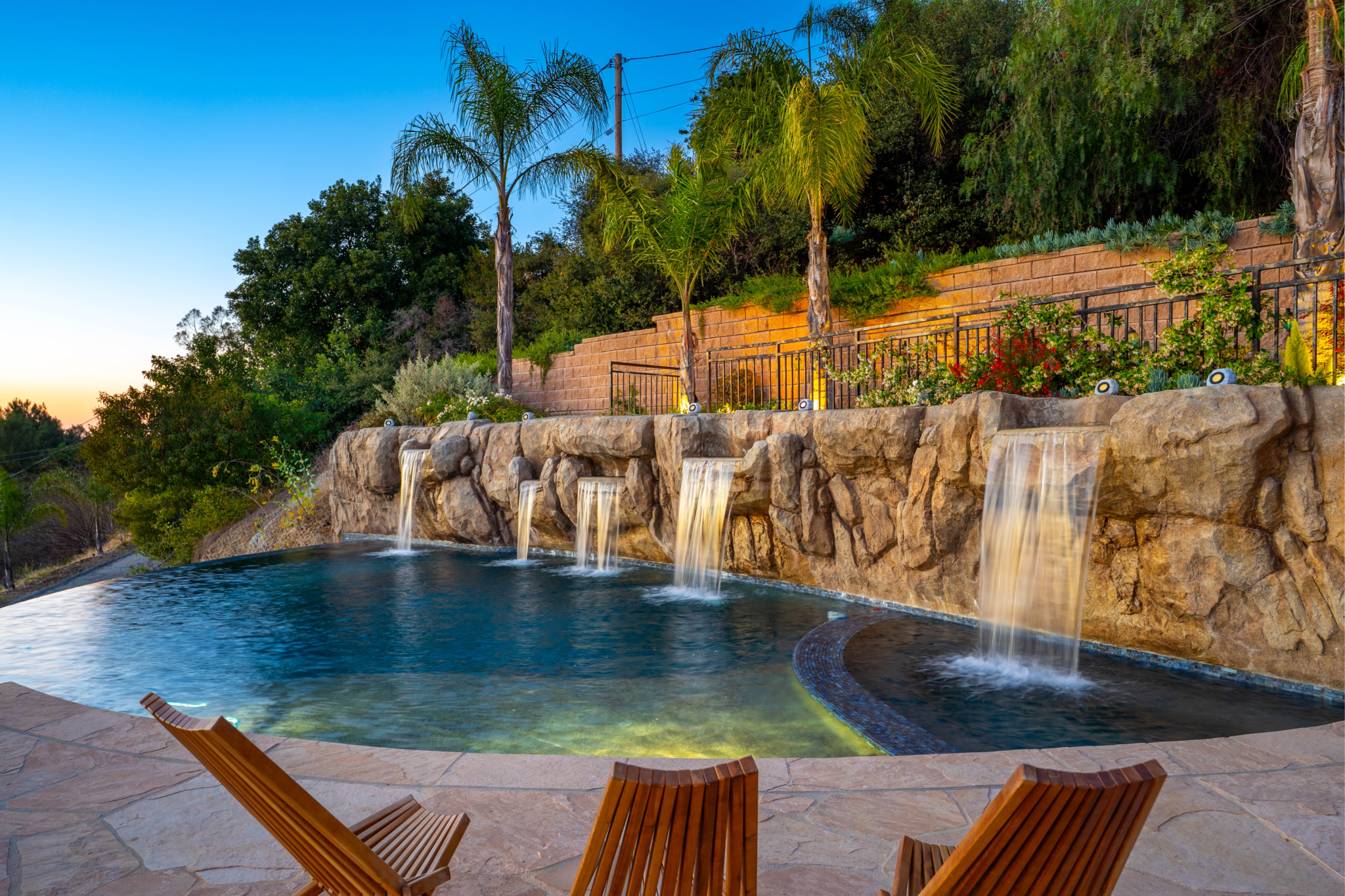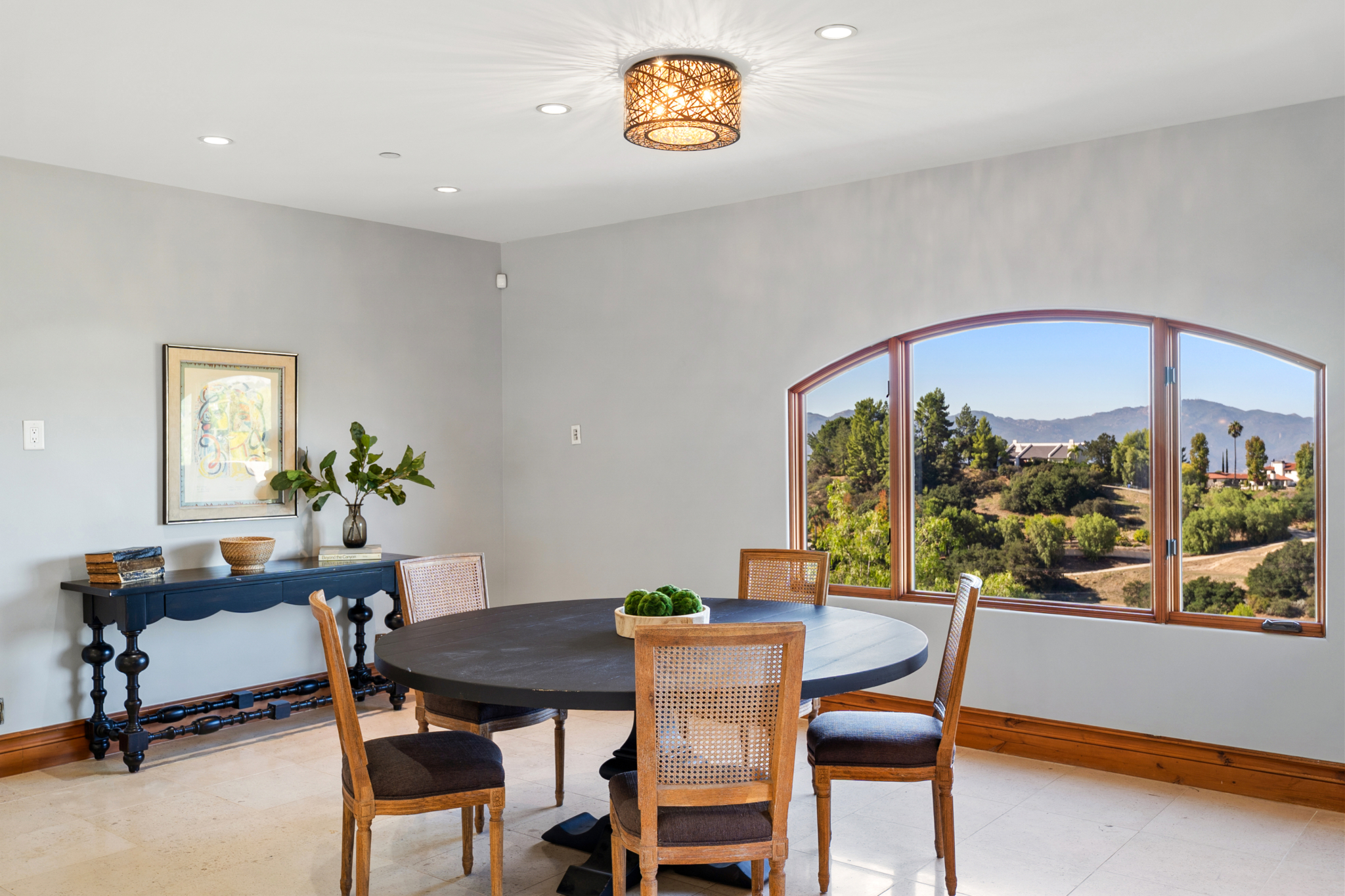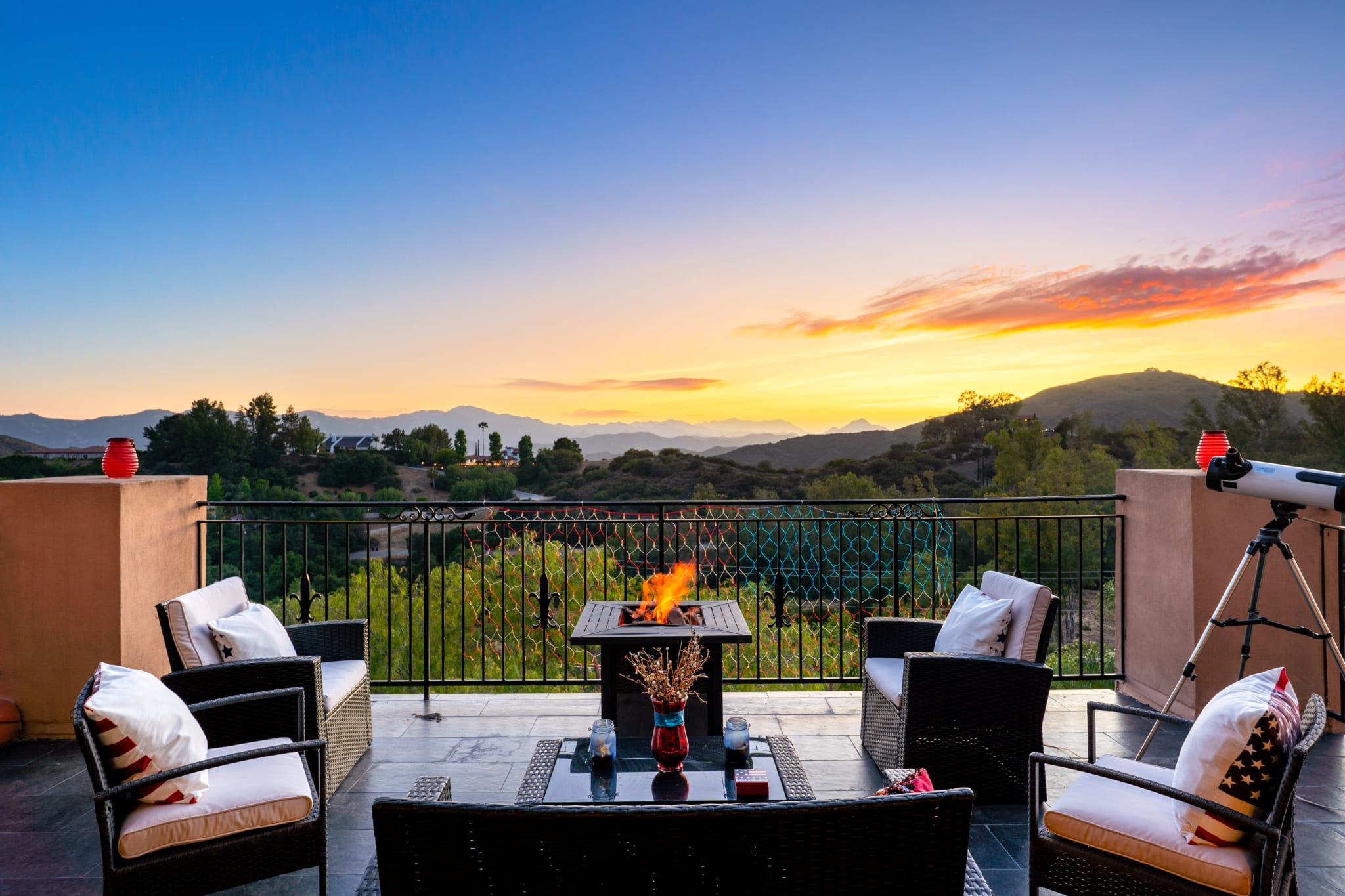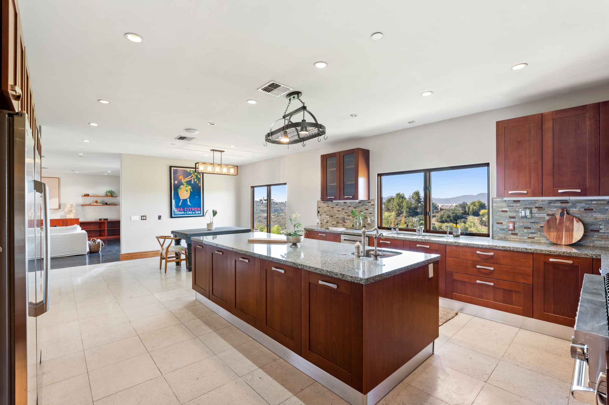 Tucked into the tranquil beauty of the Santa Monica Mountains, this estate is a rare find — blending architectural elegance with nature’s finest views. Perched just off the iconic Mulholland Highway and resting on nearly an acre of fully landscaped land, this 4,579 sq. ft. residence offers an unmatched lifestyle. Enjoy some of the most breathtaking views in the entire Santa Monica Mountain range, with sunsets off the patio that will truly take your breath away. Originally built in 2008, the home features a brand new negative-edge pool and spa oasis, complete with cascading waterfalls for a true resort-style experience. The outdoor space is an entertainer’s dream, boasting a fully equipped kitchen with a built-in pizza oven, high-end grill, and prep area — all set against a stunning mountain backdrop. Inside, the chef’s kitchen is outfitted with a Viking 8-burner stainless steel range and an oversized center island, perfect for hosting and everyday living. Throughout the home, you’ll find beautiful hardwood flooring, along with rich alder wood finishes including custom casement windows, French doors, interior doors, and baseboards. The main level offers light-filled living areas with a southwest-facing orientation, while four spacious bedrooms are located on the lower level. There is also ample room to further customize the home to your vision. Located just seconds from Viewpoint School and within the award-winning Las Virgenes Unified School District, this gated estate is ideally positioned just minutes from Malibu’s beaches and the Calabasas Commons—offering the perfect blend of natural serenity and everyday convenience.