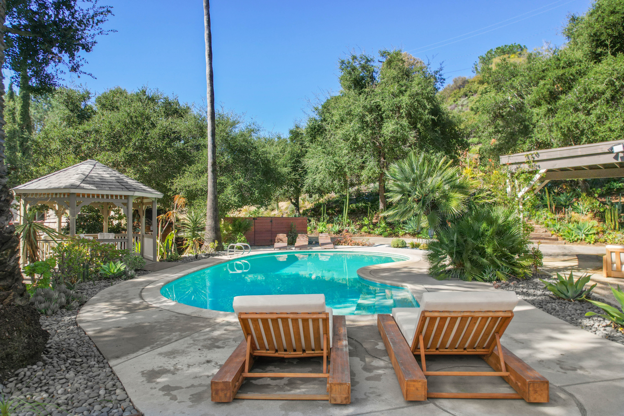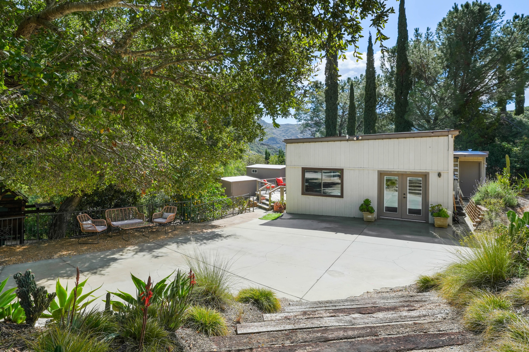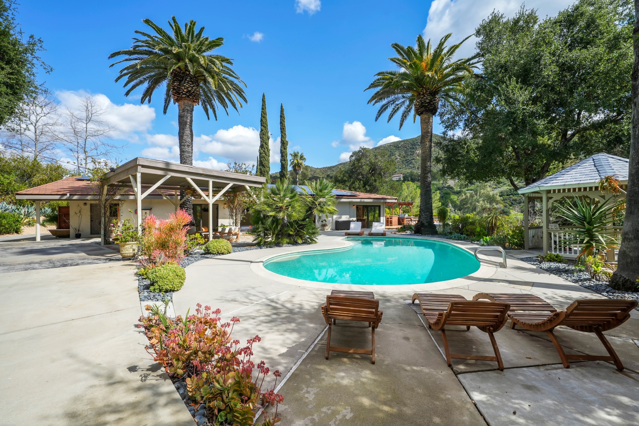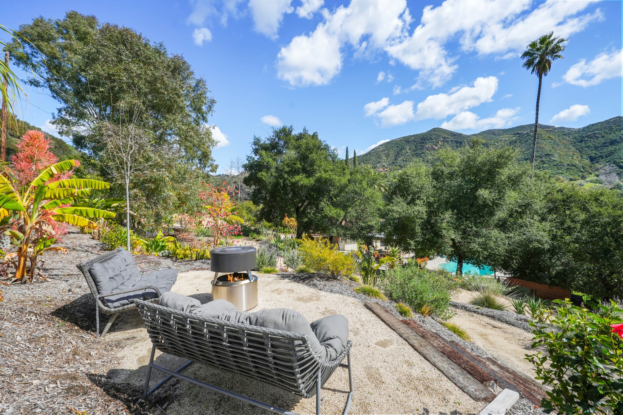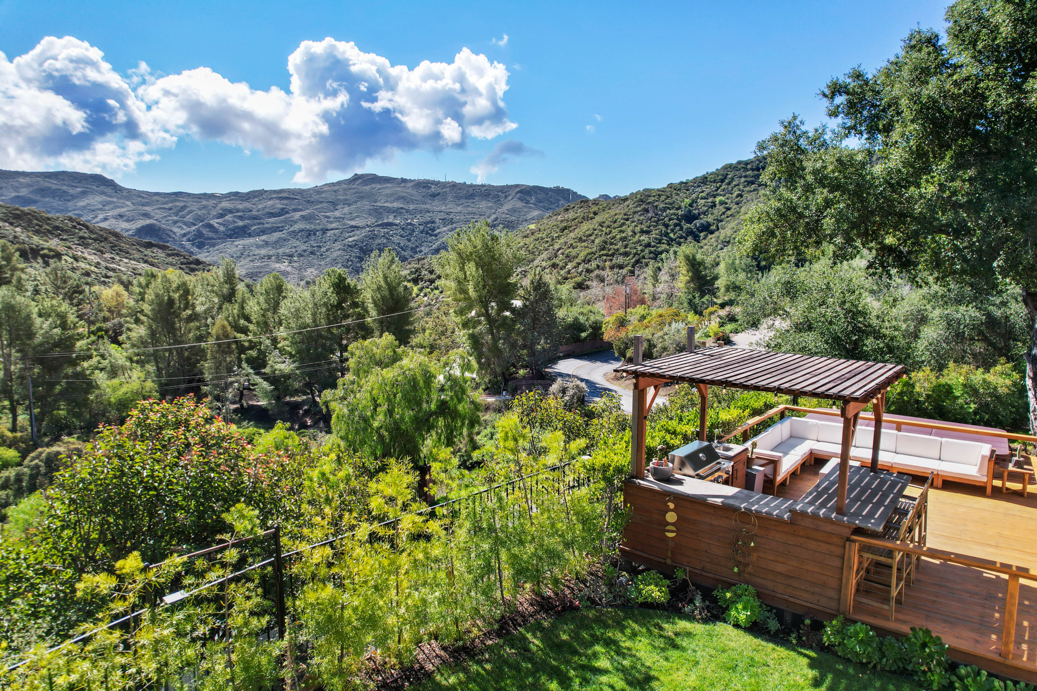 Discover a one of a kind creative sanctuary in the serene Calabasas Mountains offering a rare blend of privacy, versatility, and soulful living. This retreat features a beautifully updated four bedroom, three bath main residence complemented by a detached ADU perfect for guests, extended family, rental income, or a home studio. Inside, the open concept floor plan is filled with natural light and designed for seamless indoor outdoor living, creating an ideal environment for family gatherings, entertaining, or quiet relaxation. Step outside to enjoy a sparkling saltwater pool, cold plunge, and mineral rich swim spa, all surrounded by lush landscaping and mountain views. Over the past two years, the entire property has been thoughtfully transformed with thousands of plants into enchanting meditation gardens, meandering fruit tree paths, and a natural amphitheater designed for family events and community gatherings. Additional amenities include a detached ADU with a full kitchen offering flexible space for guests or income potential, a dedicated yoga studio for personal practice or private sessions, an inspiring art studio ideal for painting, sculpture, or creative workshops, and a professional recording studio with a sound booth designed for musicians and creators. These carefully curated spaces provide opportunities for wellness, artistic expression, and connection, making this home perfect for families seeking a lifestyle that supports creativity and everyday living. Whether you envision hosting gatherings, running wellness retreats, or simply enjoying a peaceful lifestyle with proximity to Malibu beaches and Los Angeles, this property offers a rare opportunity to live, create, and thrive in a setting that feels like a private retreat while staying connected to city conveniences.