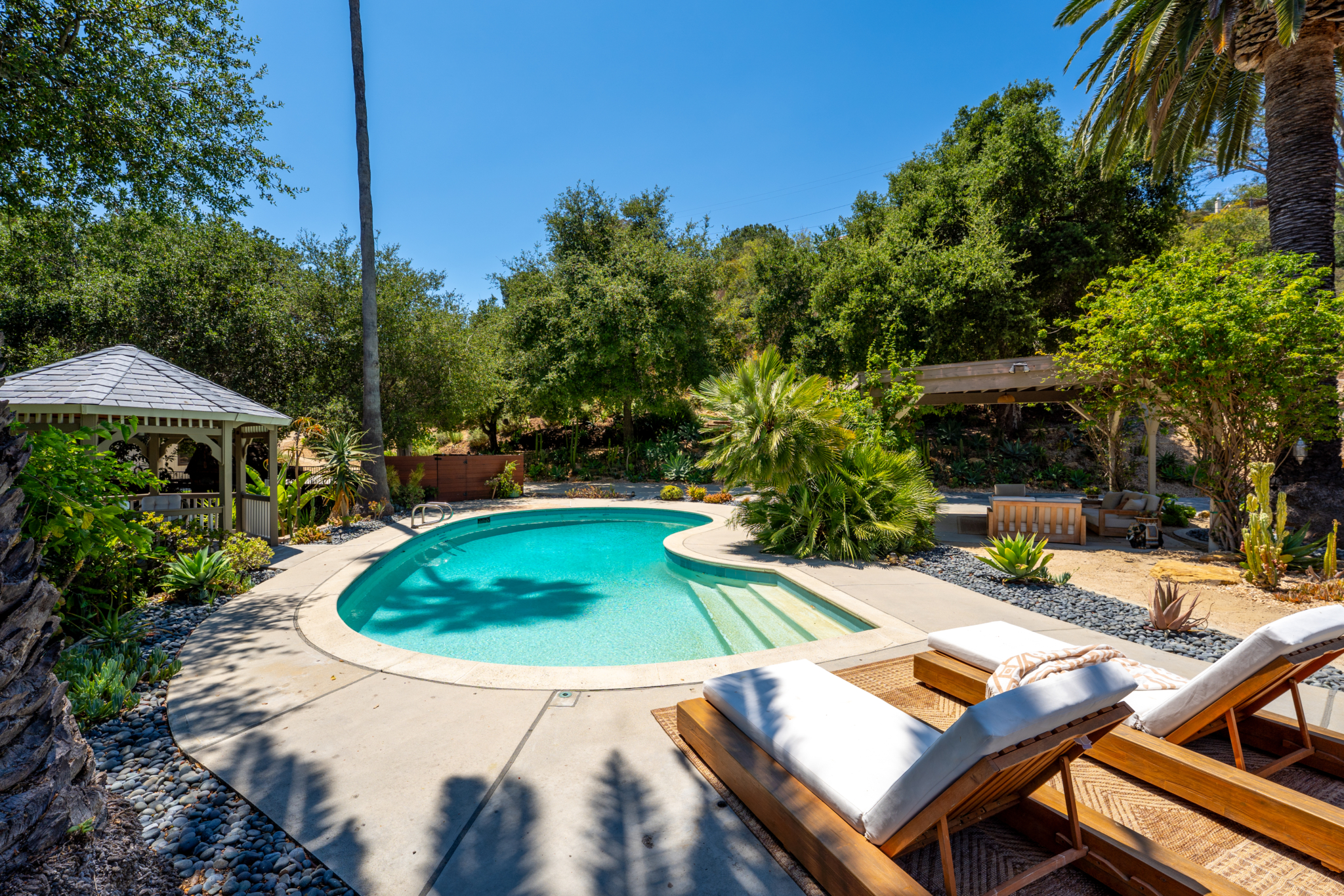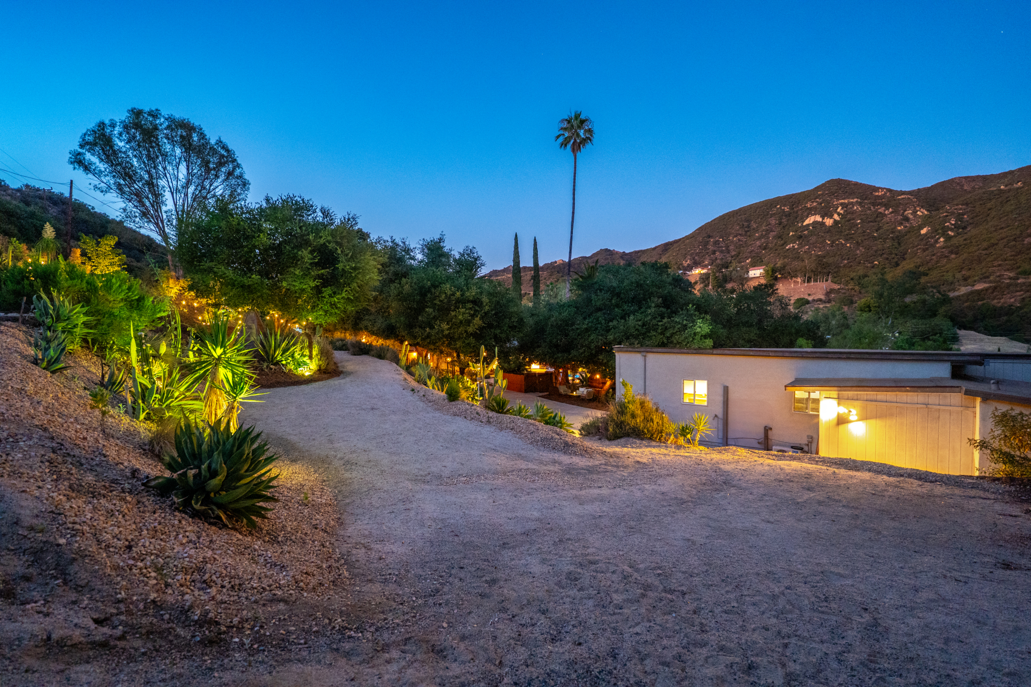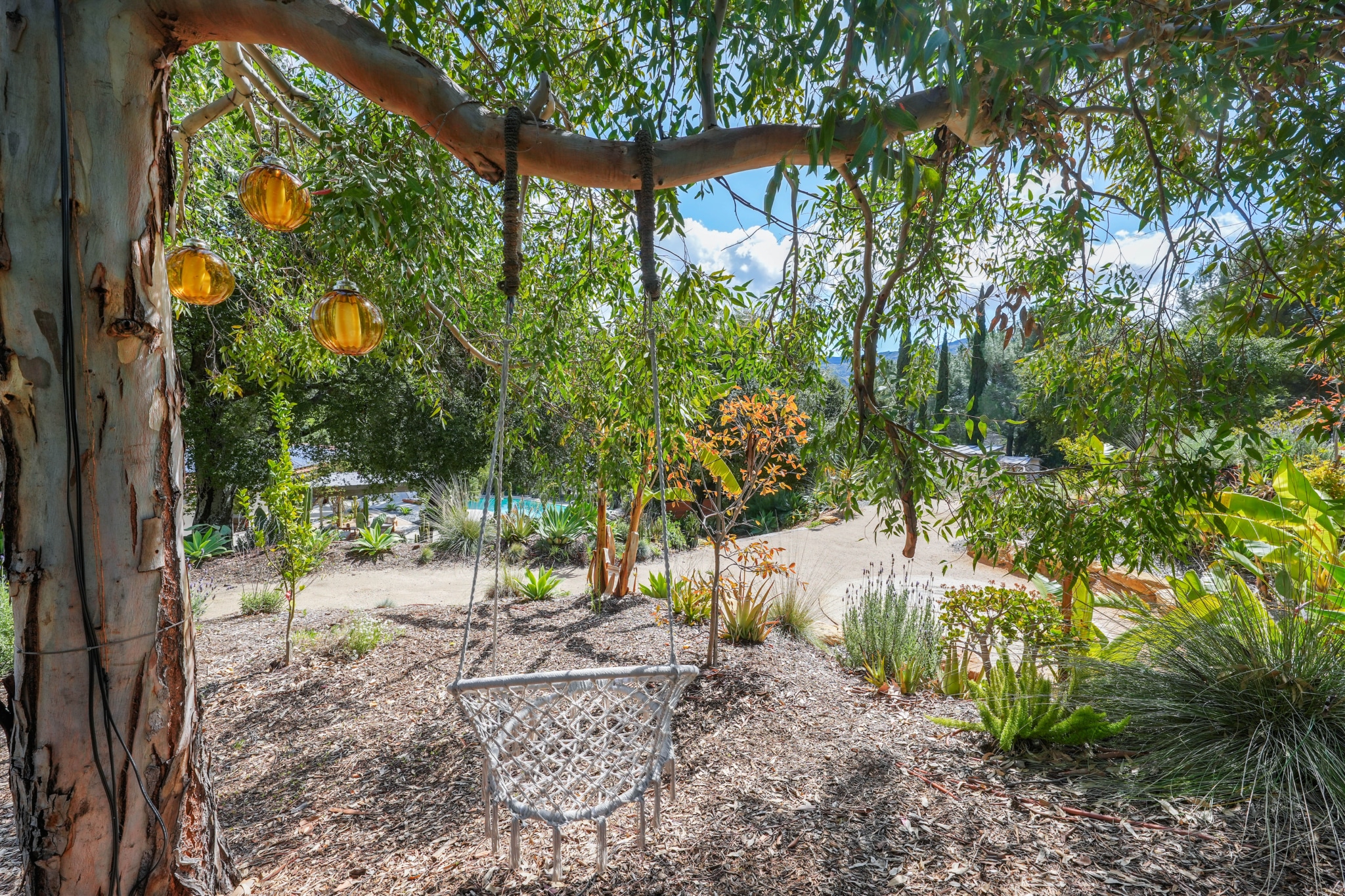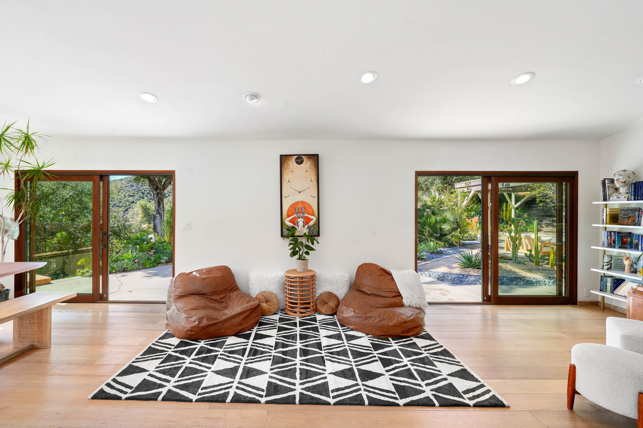Discover a one of a kind creative sanctuary in the serene Calabasas Mountains offering a rare blend of privacy, versatility, and soulful living. This retreat features a beautifully updated four bedroom, three bath main residence complemented by a detached ADU perfect for guests, extended family, rental income, or a home studio. Inside, the open concept floor plan is filled with natural light and designed for seamless indoor outdoor living, creating an ideal environment for family gatherings, entertaining, or quiet relaxation. Step outside to enjoy a sparkling saltwater pool, cold plunge, and mineral rich swim spa, all surrounded by lush landscaping and mountain views. Over the past two years, the entire property has been thoughtfully transformed with thousands of plants into enchanting meditation gardens, meandering fruit tree paths, and a natural amphitheater designed for family events and community gatherings. Additional amenities include a detached ADU with a full kitchen offering flexible space for guests or income potential, a dedicated yoga studio for personal practice or private sessions, an inspiring art studio ideal for painting, sculpture, or creative workshops, and a professional recording studio with a sound booth designed for musicians and creators. These carefully curated spaces provide opportunities for wellness, artistic expression, and connection, making this home perfect for families seeking a lifestyle that supports creativity and everyday living. Whether you envision hosting gatherings, running wellness retreats, or simply enjoying a peaceful lifestyle with proximity to Malibu beaches and Los Angeles, this property offers a rare opportunity to live, create, and thrive in a setting that feels like a private retreat while staying connected to city conveniences.