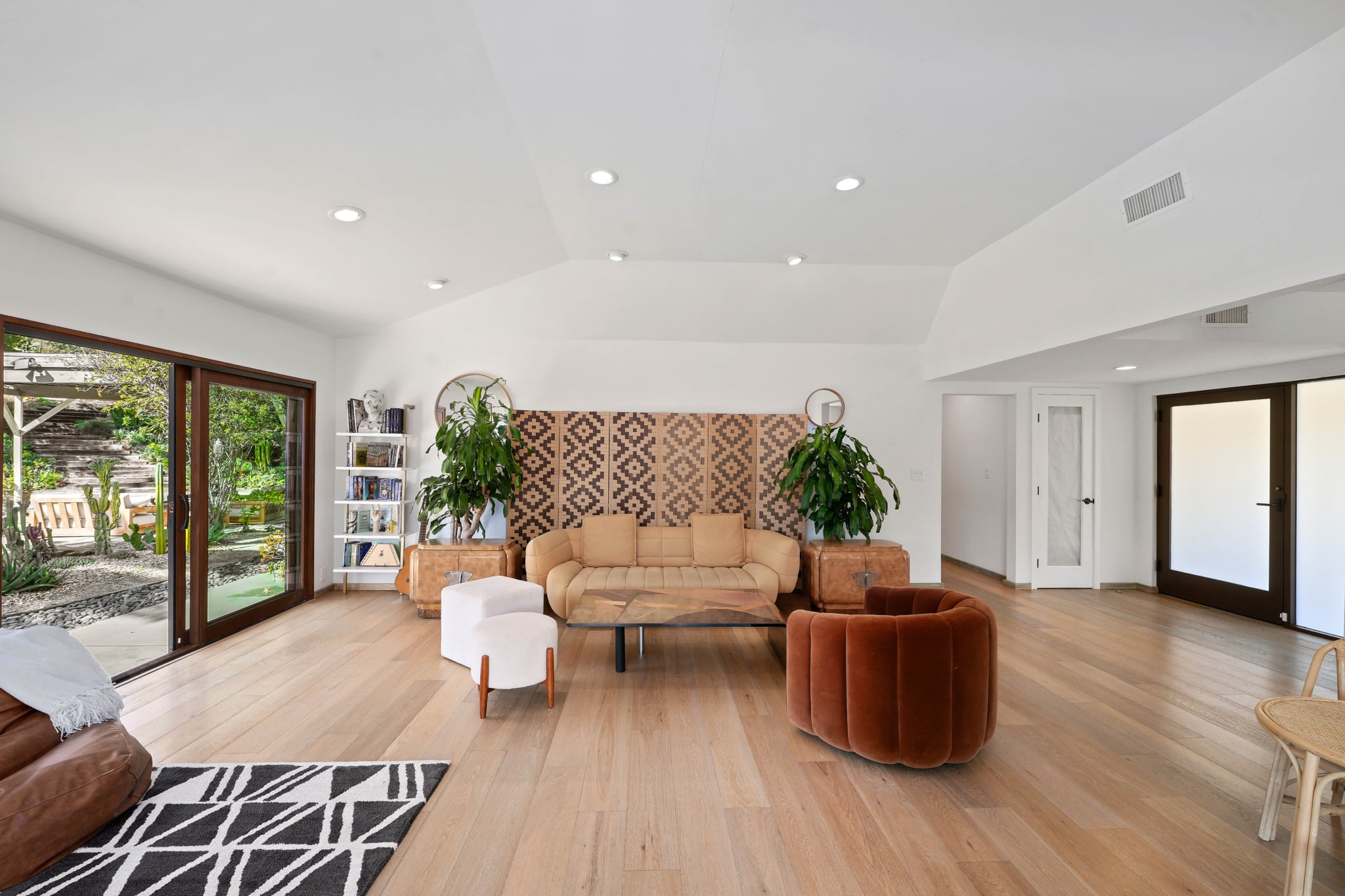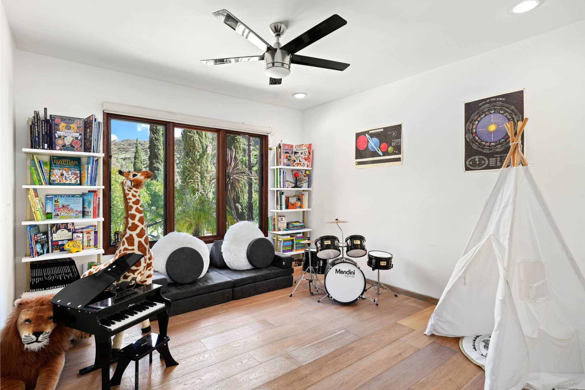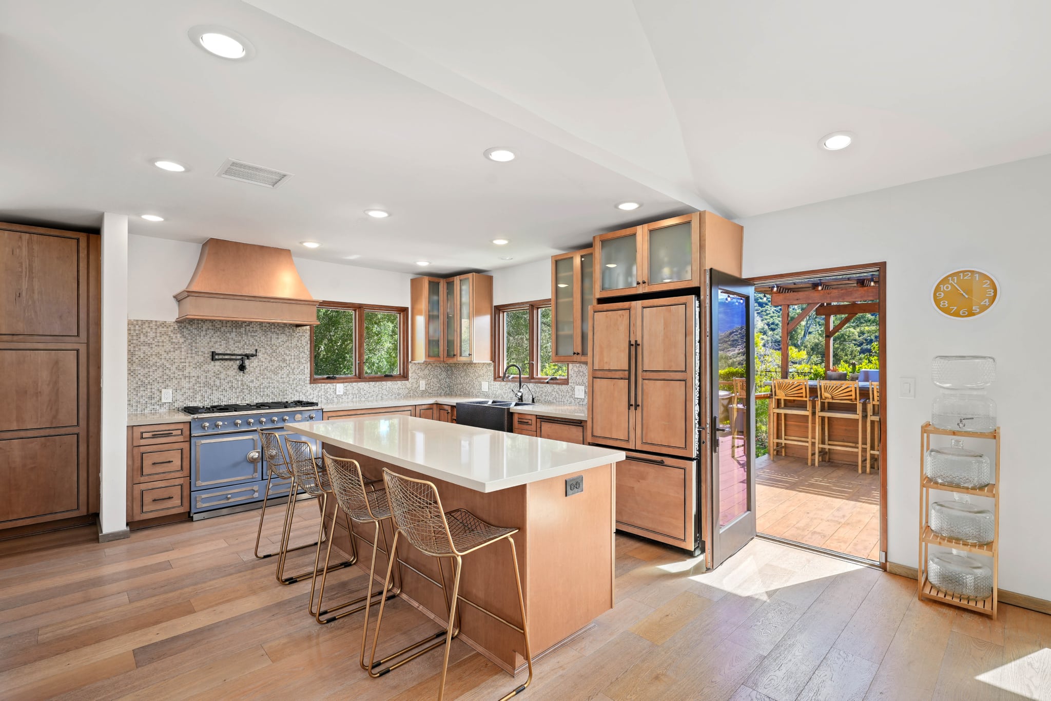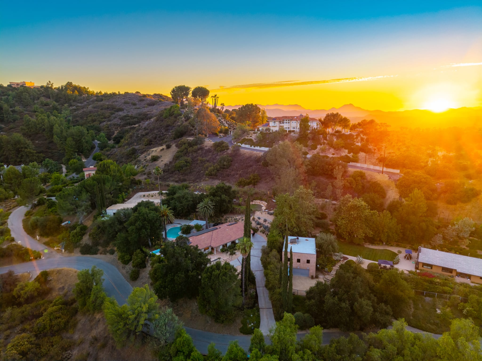 Discover a one of a kind creative sanctuary in the serene Calabasas Mountains offering a rare blend of privacy, versatility, and soulful living. This retreat features a beautifully updated four bedroom, three bath main residence complemented by a detached ADU perfect for guests, extended family, rental income, or a home studio. Inside, the open concept floor plan is filled with natural light and designed for seamless indoor outdoor living, creating an ideal environment for family gatherings, entertaining, or quiet relaxation. Step outside to enjoy a sparkling saltwater pool, cold plunge, and mineral rich swim spa, all surrounded by lush landscaping and mountain views. Over the past two years, the entire property has been thoughtfully transformed with thousands of plants into enchanting meditation gardens, meandering fruit tree paths, and a natural amphitheater designed for family events and community gatherings. Additional amenities include a detached ADU with a full kitchen offering flexible space for guests or income potential, a dedicated yoga studio for personal practice or private sessions, an inspiring art studio ideal for painting, sculpture, or creative workshops, and a professional recording studio with a sound booth designed for musicians and creators. These carefully curated spaces provide opportunities for wellness, artistic expression, and connection, making this home perfect for families seeking a lifestyle that supports creativity and everyday living. Whether you envision hosting gatherings, running wellness retreats, or simply enjoying a peaceful lifestyle with proximity to Malibu beaches and Los Angeles, this property offers a rare opportunity to live, create, and thrive in a setting that feels like a private retreat while staying connected to city conveniences.