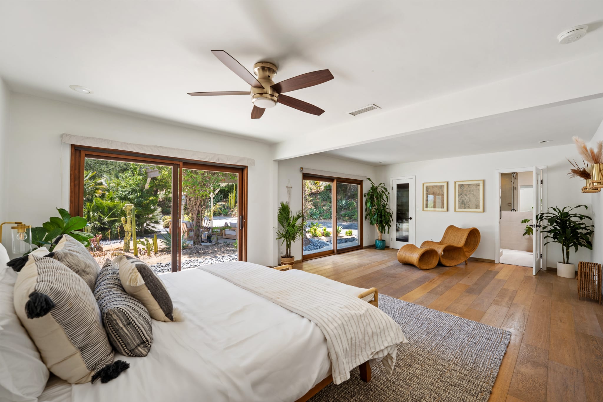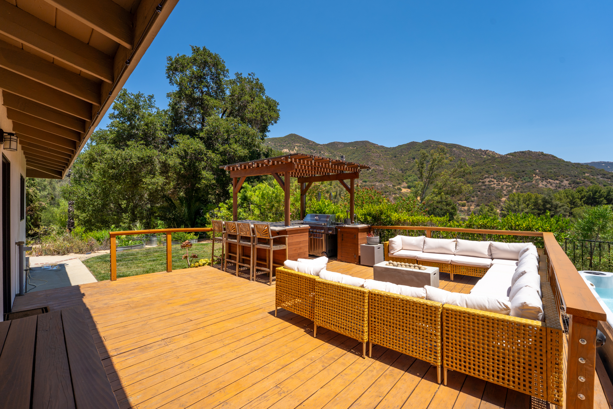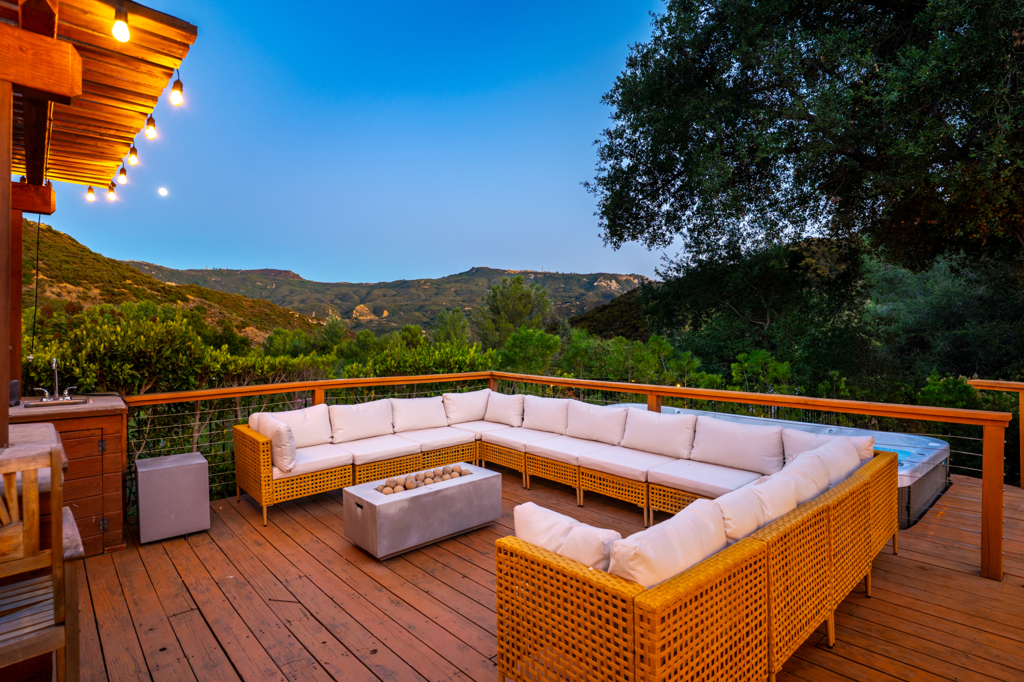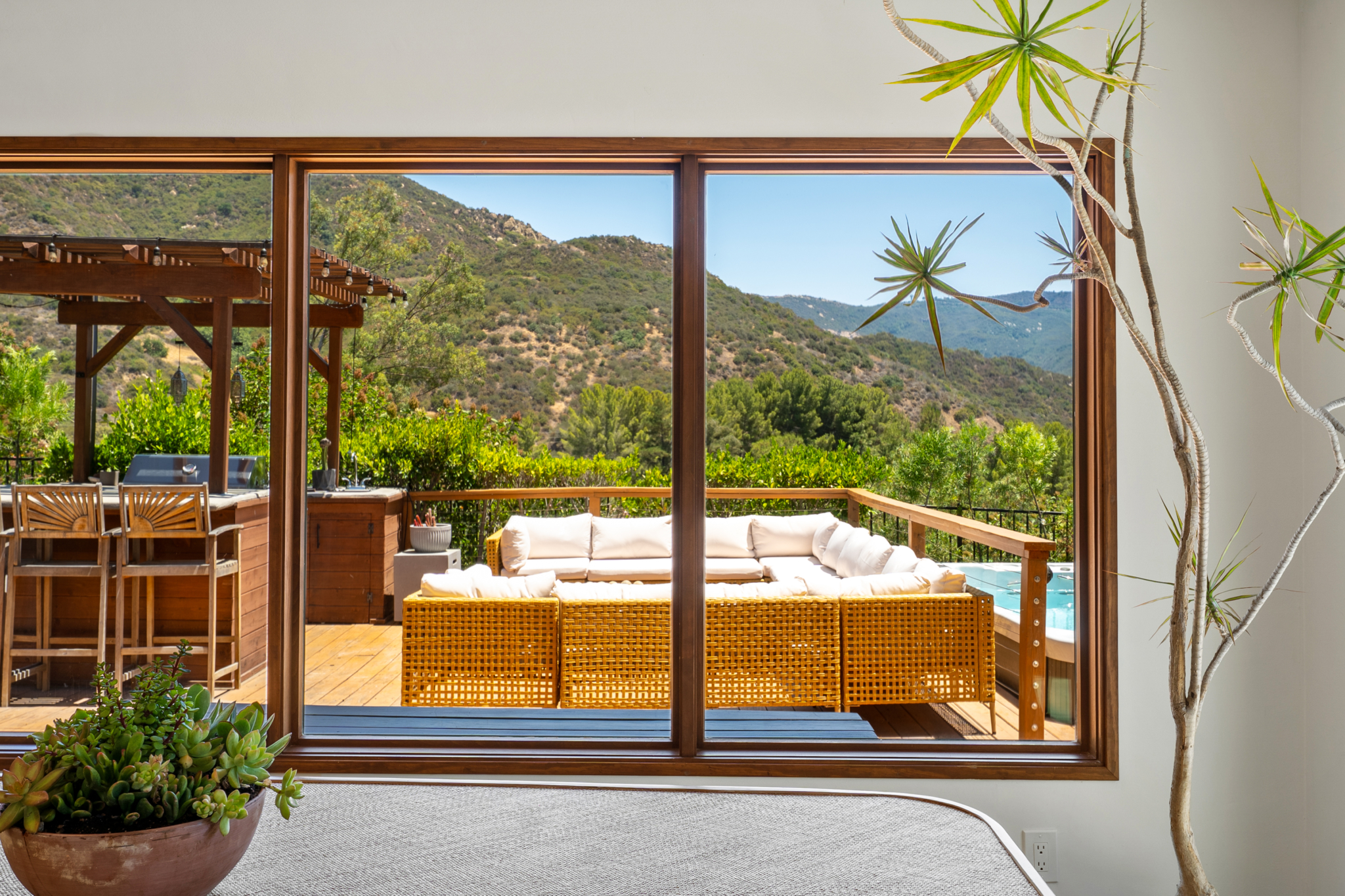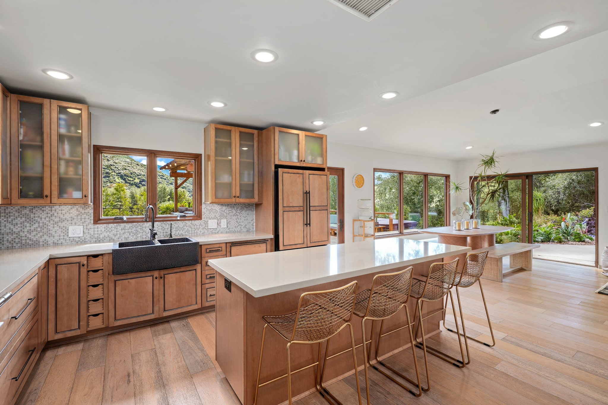 Discover a one of a kind creative sanctuary in the serene Calabasas Mountains offering a rare blend of privacy, versatility, and soulful living. This retreat features a beautifully updated four bedroom, three bath main residence complemented by a detached ADU perfect for guests, extended family, rental income, or a home studio. Inside, the open concept floor plan is filled with natural light and designed for seamless indoor outdoor living, creating an ideal environment for family gatherings, entertaining, or quiet relaxation. Step outside to enjoy a sparkling saltwater pool, cold plunge, and mineral rich swim spa, all surrounded by lush landscaping and mountain views. Over the past two years, the entire property has been thoughtfully transformed with thousands of plants into enchanting meditation gardens, meandering fruit tree paths, and a natural amphitheater designed for family events and community gatherings. Additional amenities include a detached ADU with a full kitchen offering flexible space for guests or income potential, a dedicated yoga studio for personal practice or private sessions, an inspiring art studio ideal for painting, sculpture, or creative workshops, and a professional recording studio with a sound booth designed for musicians and creators. These carefully curated spaces provide opportunities for wellness, artistic expression, and connection, making this home perfect for families seeking a lifestyle that supports creativity and everyday living. Whether you envision hosting gatherings, running wellness retreats, or simply enjoying a peaceful lifestyle with proximity to Malibu beaches and Los Angeles, this property offers a rare opportunity to live, create, and thrive in a setting that feels like a private retreat while staying connected to city conveniences.