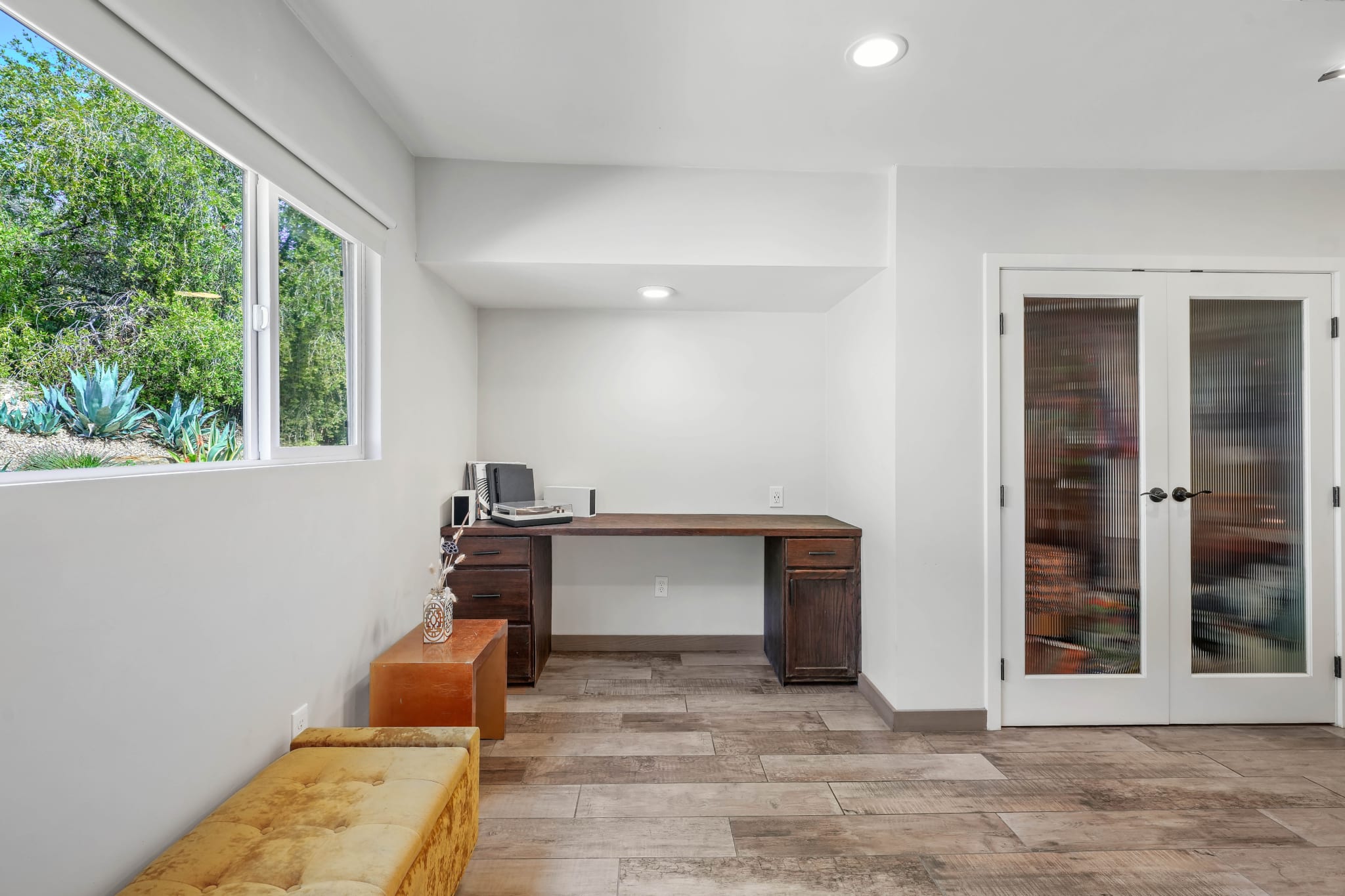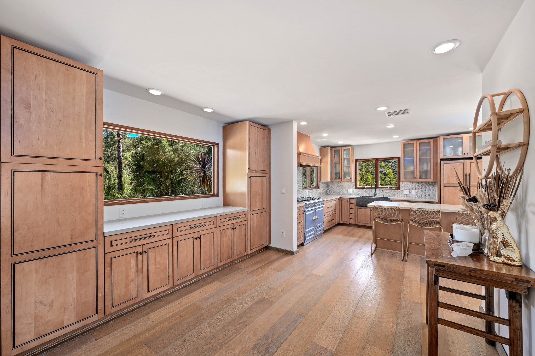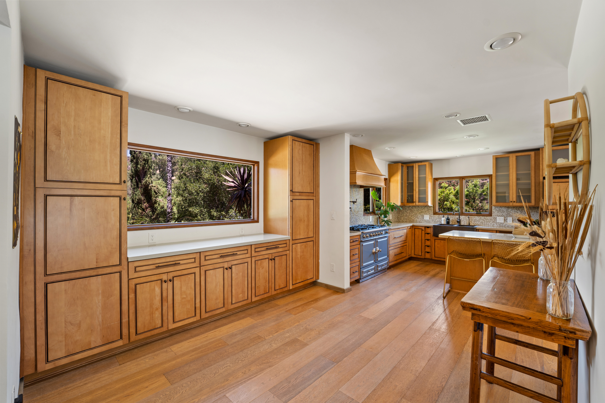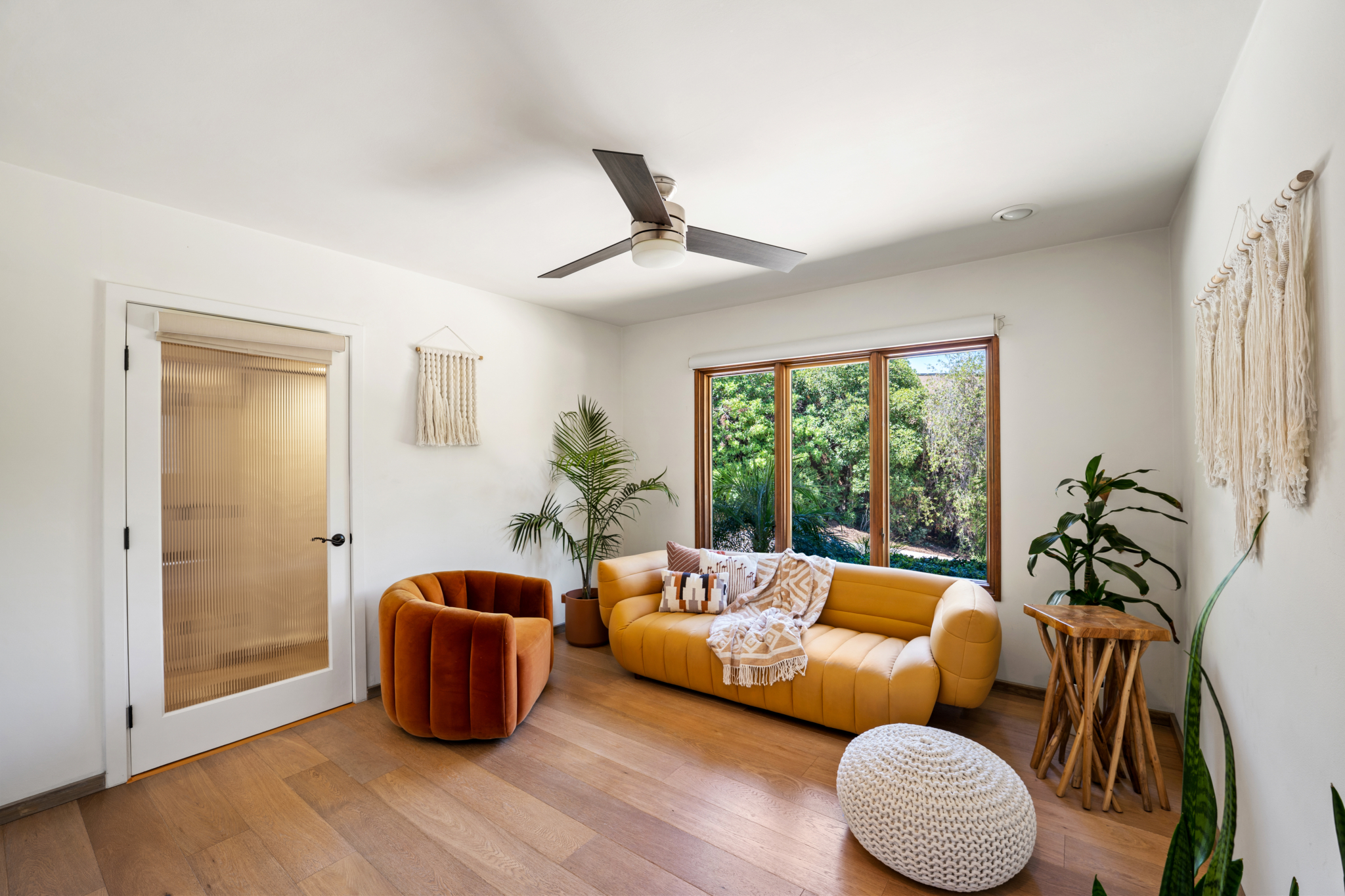 Discover a one of a kind creative sanctuary in the serene Calabasas Mountains offering a rare blend of privacy, versatility, and soulful living. This retreat features a beautifully updated four bedroom, three bath main residence complemented by a detached ADU perfect for guests, extended family, rental income, or a home studio. Inside, the open concept floor plan is filled with natural light and designed for seamless indoor outdoor living, creating an ideal environment for family gatherings, entertaining, or quiet relaxation. Step outside to enjoy a sparkling saltwater pool, cold plunge, and mineral rich swim spa, all surrounded by lush landscaping and mountain views. Over the past two years, the entire property has been thoughtfully transformed with thousands of plants into enchanting meditation gardens, meandering fruit tree paths, and a natural amphitheater designed for family events and community gatherings. Additional amenities include a detached ADU with a full kitchen offering flexible space for guests or income potential, a dedicated yoga studio for personal practice or private sessions, an inspiring art studio ideal for painting, sculpture, or creative workshops, and a professional recording studio with a sound booth designed for musicians and creators. These carefully curated spaces provide opportunities for wellness, artistic expression, and connection, making this home perfect for families seeking a lifestyle that supports creativity and everyday living. Whether you envision hosting gatherings, running wellness retreats, or simply enjoying a peaceful lifestyle with proximity to Malibu beaches and Los Angeles, this property offers a rare opportunity to live, create, and thrive in a setting that feels like a private retreat while staying connected to city conveniences.