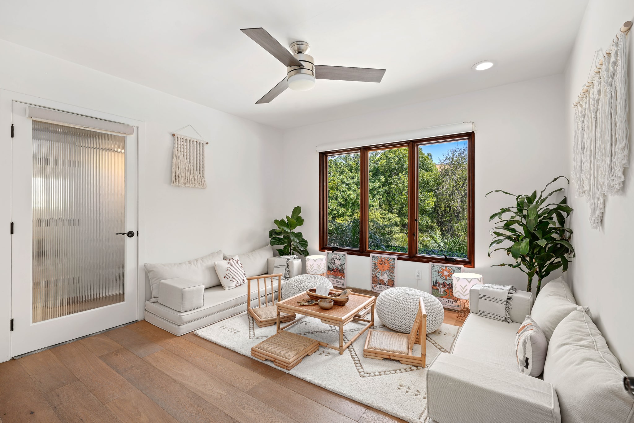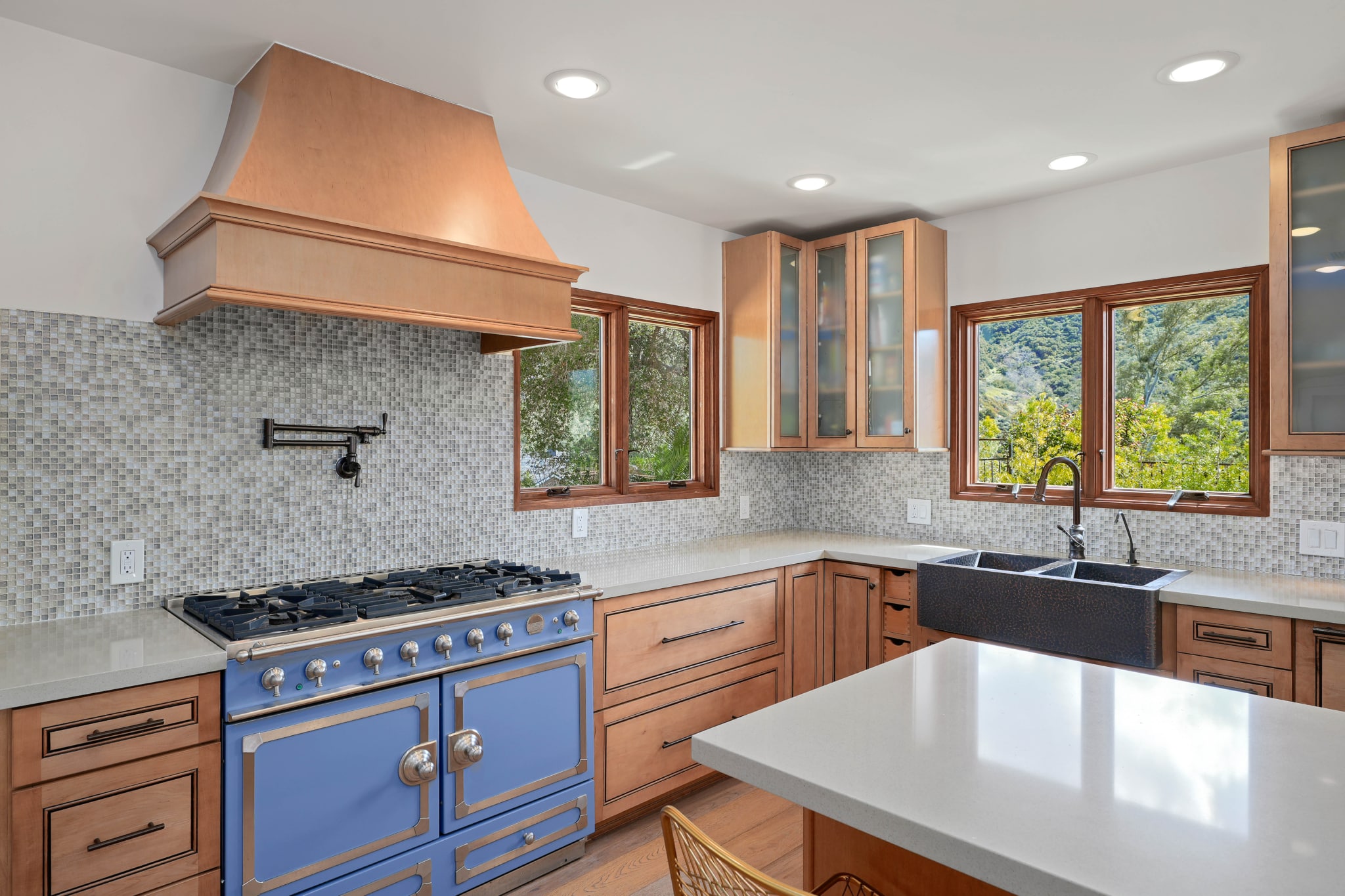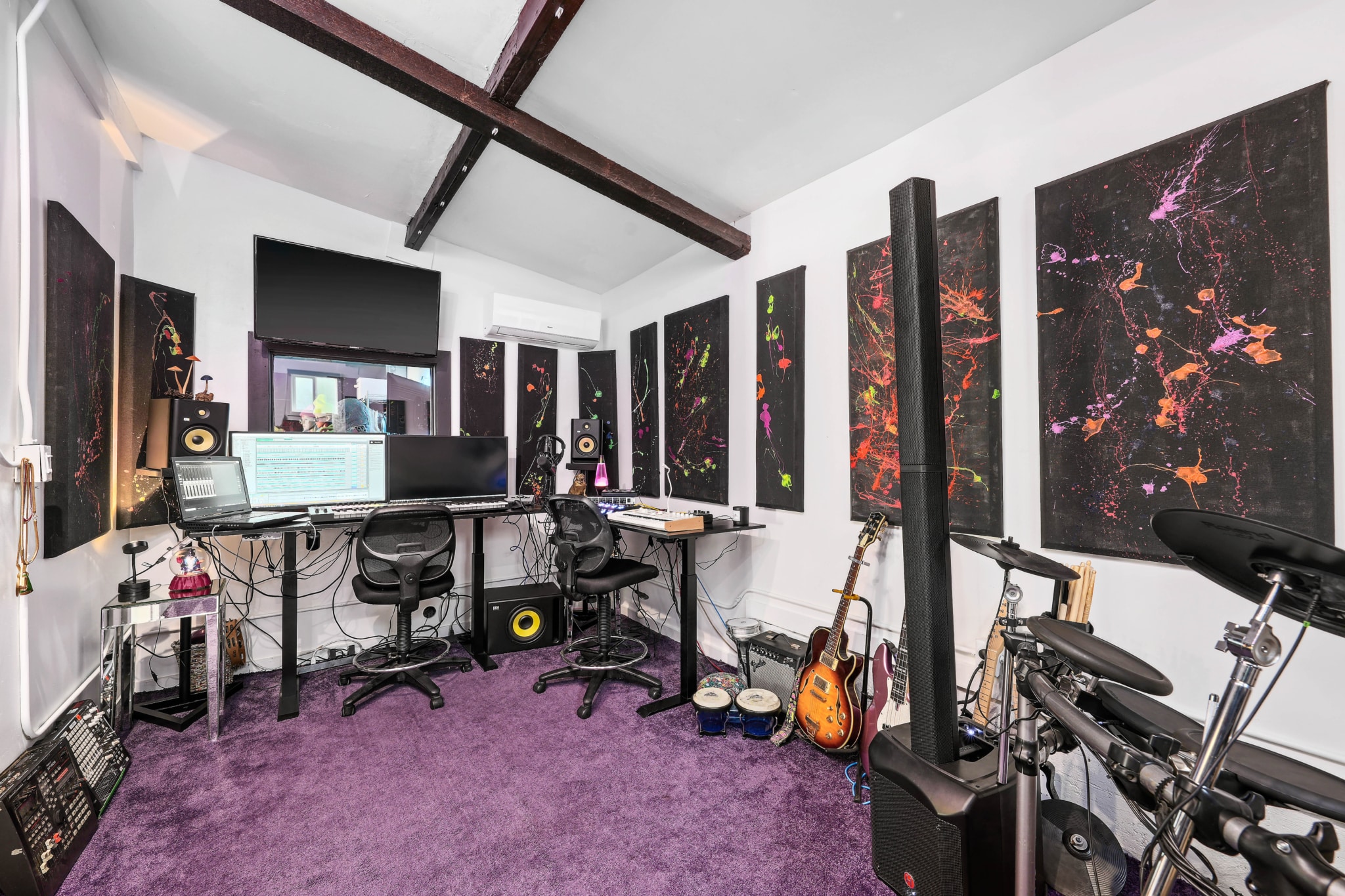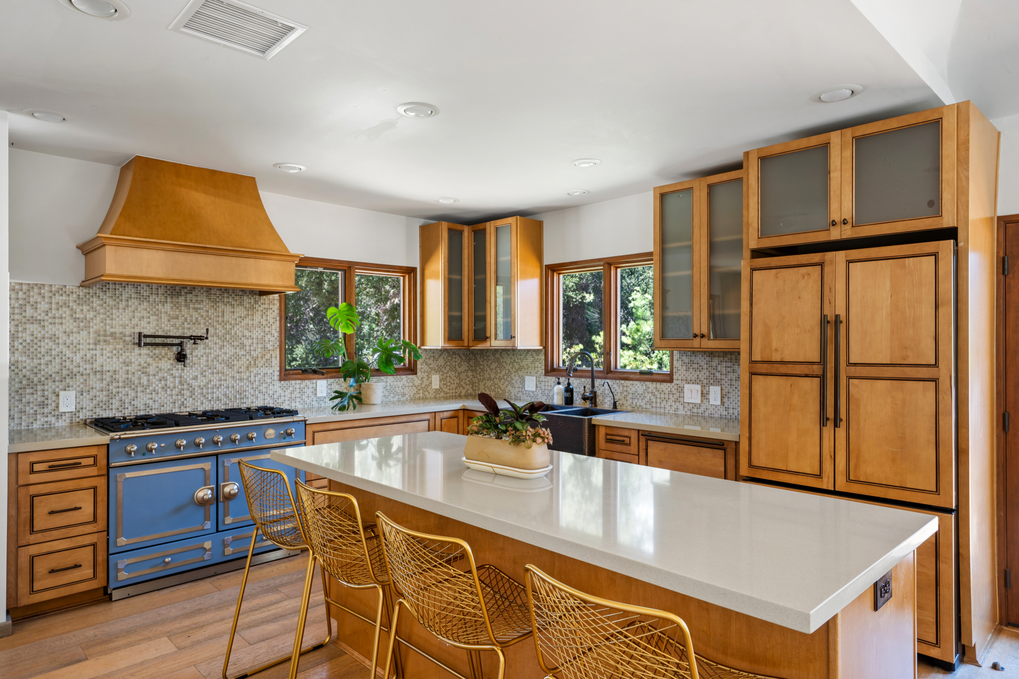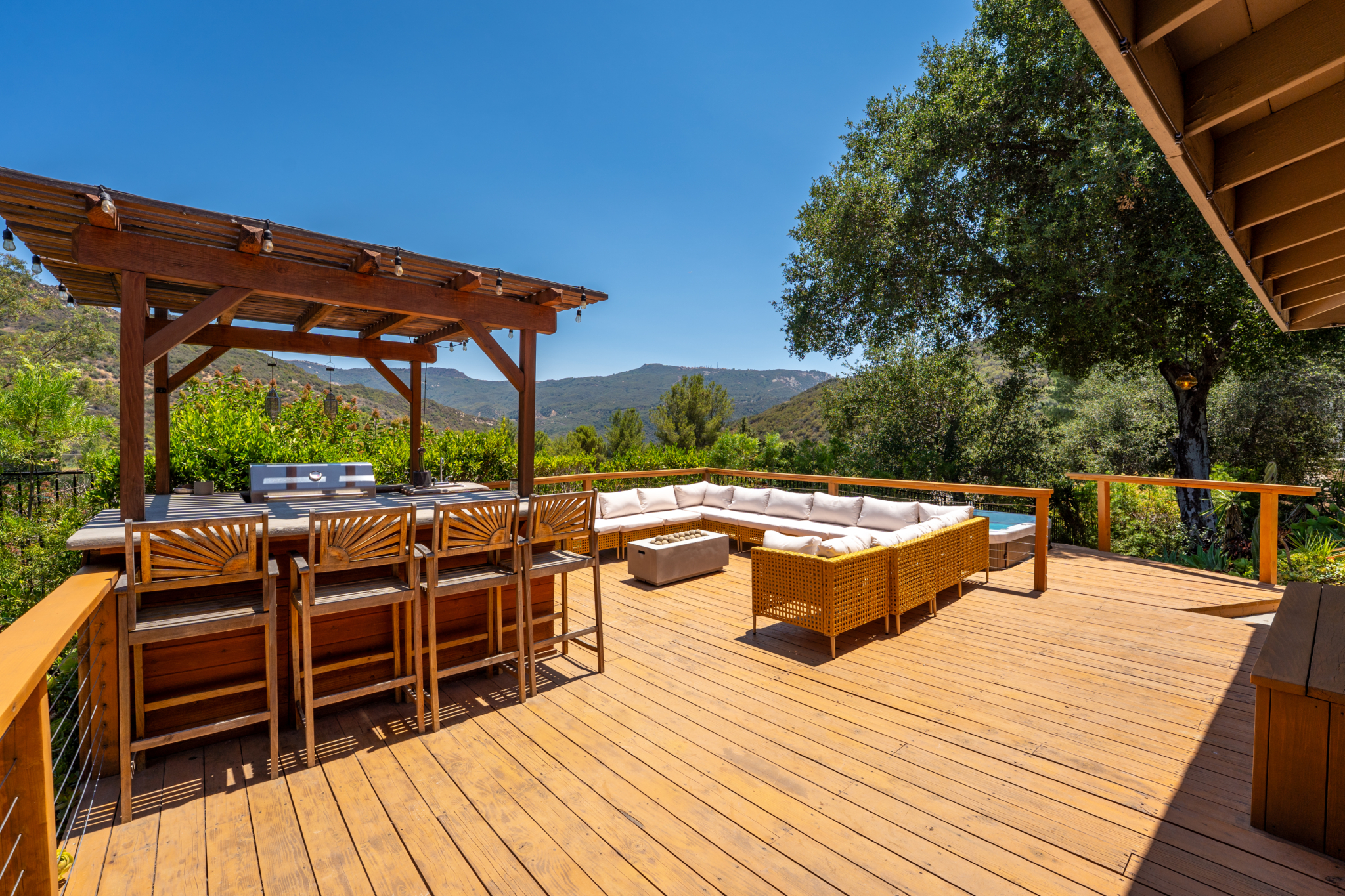 Discover a one of a kind creative sanctuary in the serene Calabasas Mountains offering a rare blend of privacy, versatility, and soulful living. This retreat features a beautifully updated four bedroom, three bath main residence complemented by a detached ADU perfect for guests, extended family, rental income, or a home studio. Inside, the open concept floor plan is filled with natural light and designed for seamless indoor outdoor living, creating an ideal environment for family gatherings, entertaining, or quiet relaxation. Step outside to enjoy a sparkling saltwater pool, cold plunge, and mineral rich swim spa, all surrounded by lush landscaping and mountain views. Over the past two years, the entire property has been thoughtfully transformed with thousands of plants into enchanting meditation gardens, meandering fruit tree paths, and a natural amphitheater designed for family events and community gatherings. Additional amenities include a detached ADU with a full kitchen offering flexible space for guests or income potential, a dedicated yoga studio for personal practice or private sessions, an inspiring art studio ideal for painting, sculpture, or creative workshops, and a professional recording studio with a sound booth designed for musicians and creators. These carefully curated spaces provide opportunities for wellness, artistic expression, and connection, making this home perfect for families seeking a lifestyle that supports creativity and everyday living. Whether you envision hosting gatherings, running wellness retreats, or simply enjoying a peaceful lifestyle with proximity to Malibu beaches and Los Angeles, this property offers a rare opportunity to live, create, and thrive in a setting that feels like a private retreat while staying connected to city conveniences.