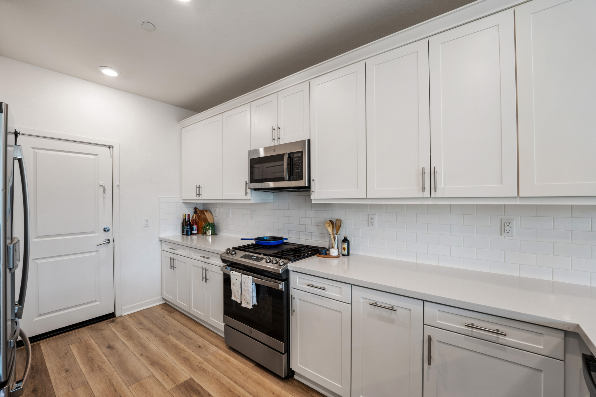 Tucked inside a quiet, gated community of just eight homes, this 4-bedroom, 3-bathroom home offers space, comfort, and a thoughtful layout in a prime Northridge location. Built in 2021, it blends the convenience of urban living in a suburban setting, just minutes from local shops, restaurants, and top-rated schools. The main floor features an open-concept living and dining area with luxury vinyl plank flooring and a bright, functional kitchen complete with quartz countertops and a stainless steel appliance package. Upstairs, you’ll find all four bedrooms, including a spacious primary suite with a walk-in closet and room to relax. A second-floor laundry room adds everyday convenience, and the additional bedrooms are generously sized for family, guests, or a home office. The private backyard is a standout feature, offering a great space for outdoor dining, play, or simply enjoying the sunshine. Low HOA dues help maintain the security and charm of this small gated community while keeping monthly costs manageable.